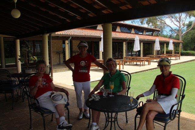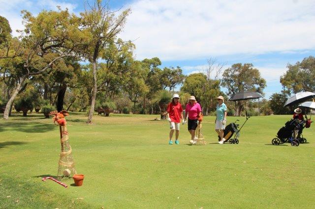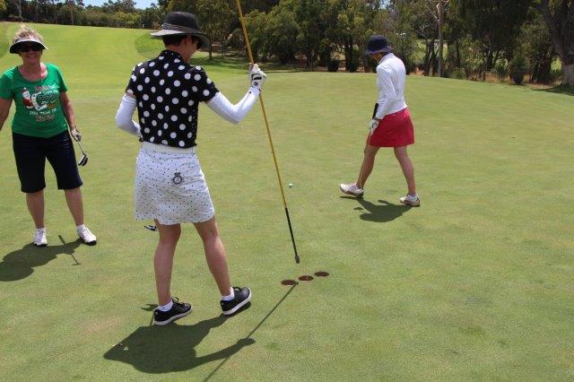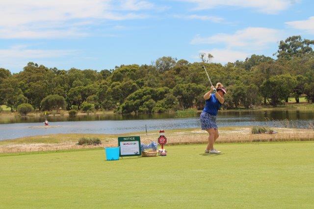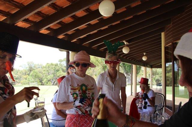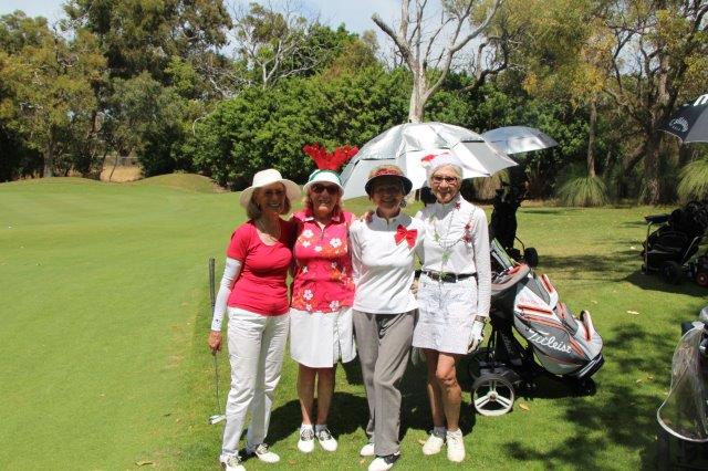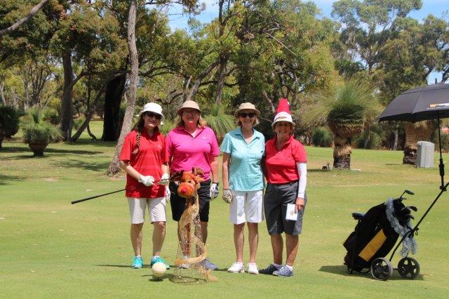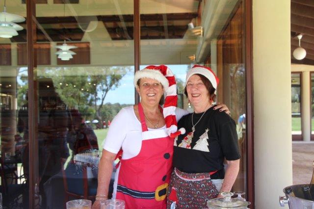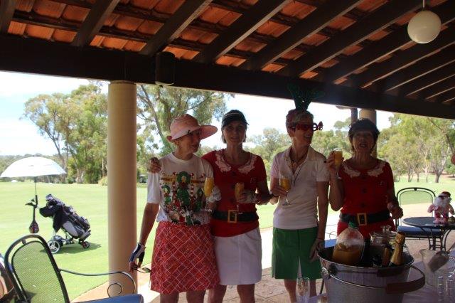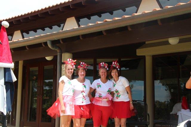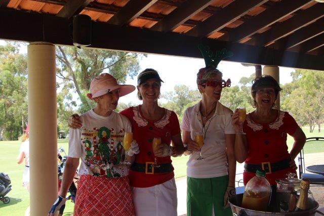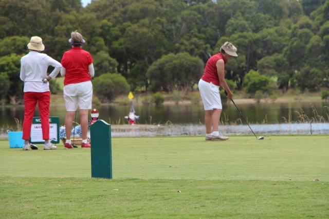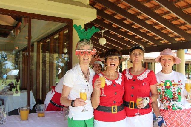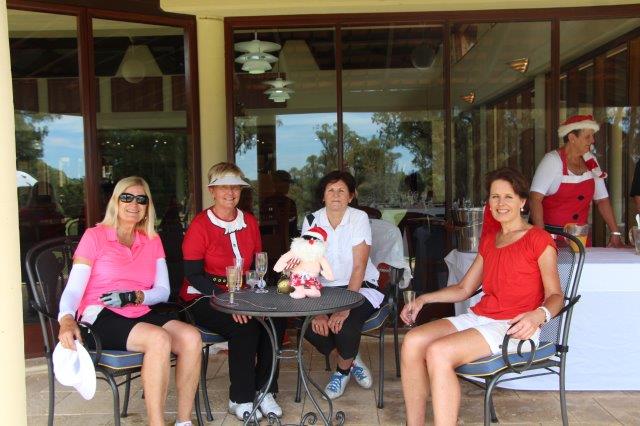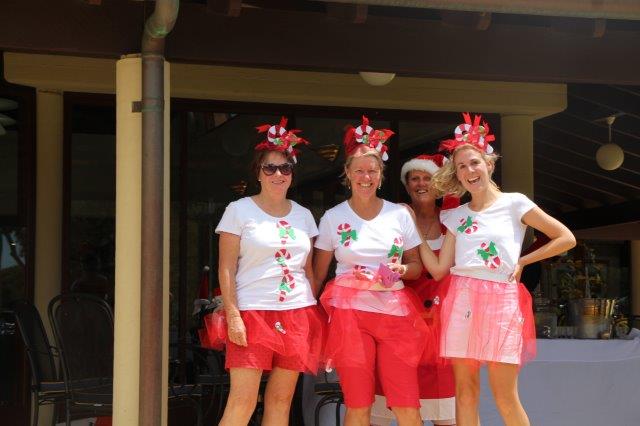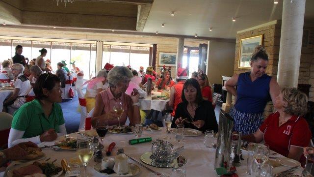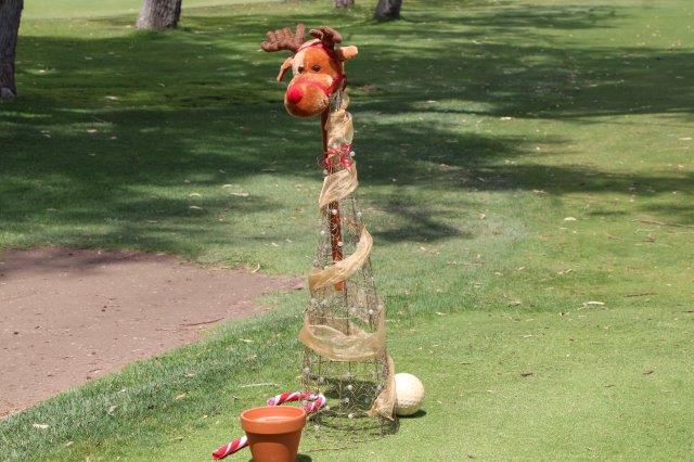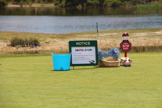 A fun day indeed!  A full house with 108 on the main course playing 14holes and 30 on the North Course..  The format was elimination Ambrose with a couple of twists..  Both courses had a choice of a couple of flags on a few holes.. the 18th had 4 holes to putt to!  On the main course there was an extra Christmas surprise with a shot at stranded Santa on the island before you played the 3rd hole.   Golf was followed by a Christmas buffet lunch and carols from the Golf Bags.  Merry Xmas everyone!